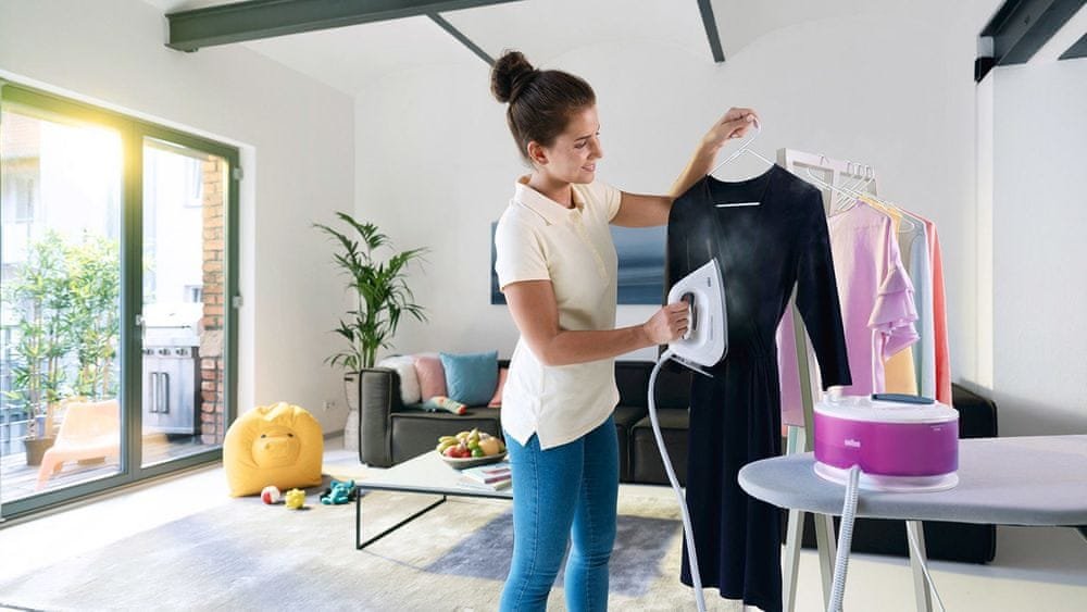 Kompaktní žehlička s parním generátorem v elegantním bílém provedení se sametově purpurovými prvky. Braun IS 2044VI přináší špičkové výsledky žehlení za polovinu času, a to díky kombinaci technologií DoubleSteam a FreeGlide 3D. Vysoký tlak pomáhá páře proniknout do tkaniny, a tak je žehlení snadnější. 3D žehlicí plocha zaručuje kluznost ve všech směrech.